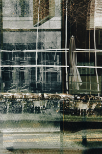 2024De abstracte reflectie laat niet zien wat er binnen gebeurt. De afstand tussen binnen en buiten is maximaal, geheel gescheiden werelden.